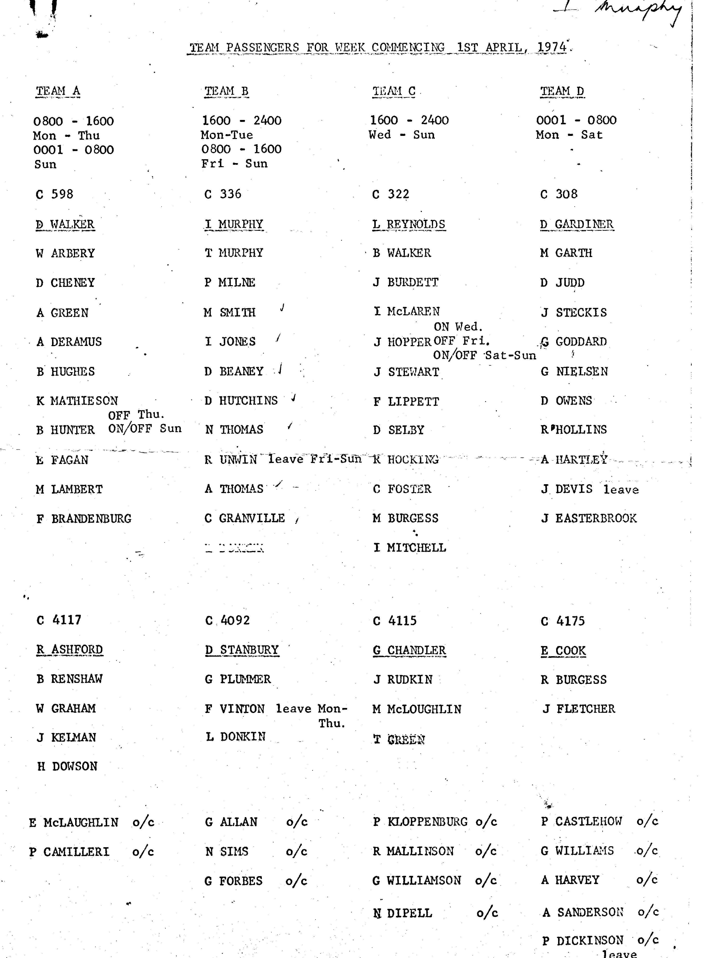 Shift Bus Passenger List - April 1974 - Page 1