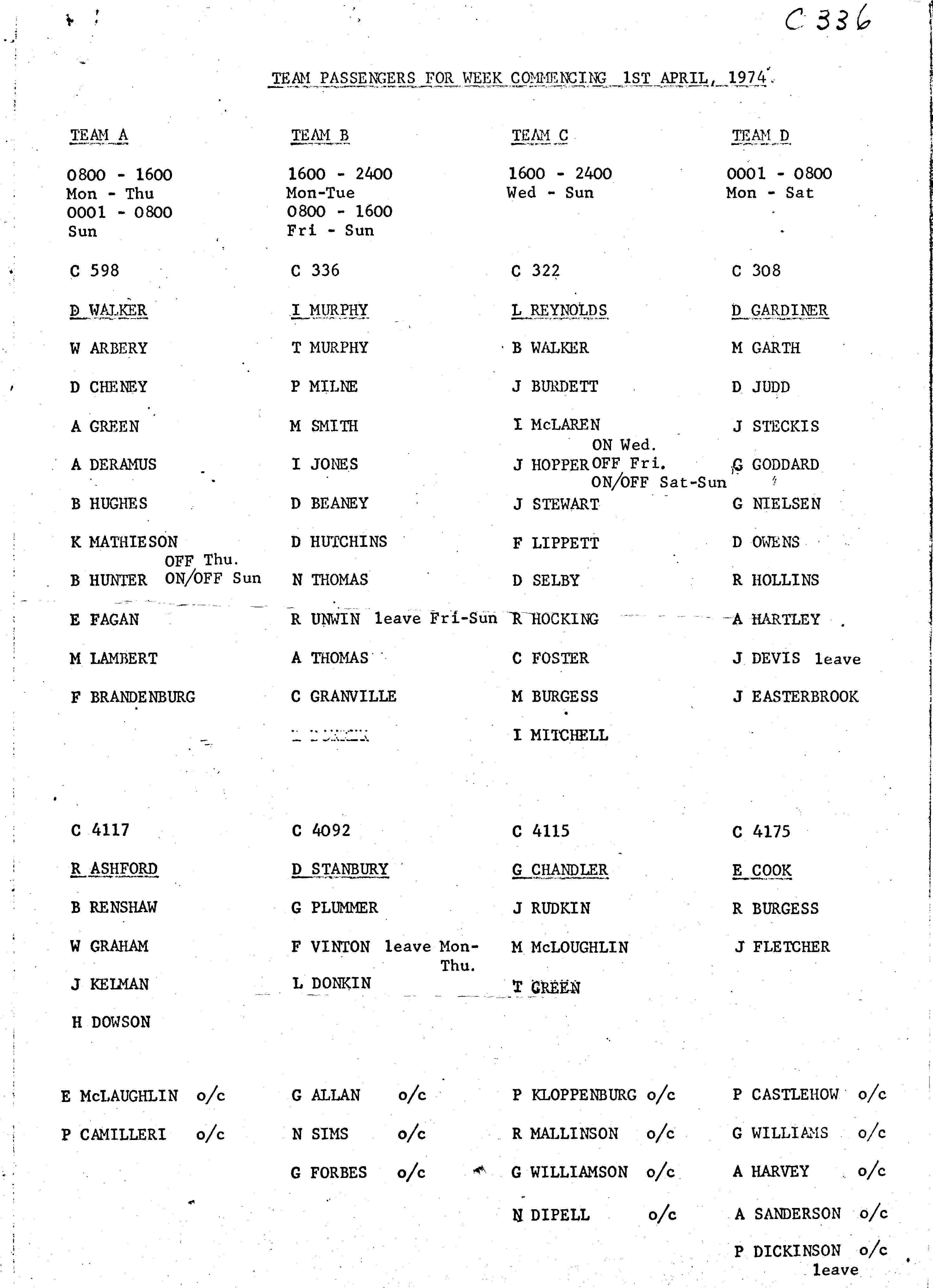 Shift Bus Passenger List - April 1974 - Page 1